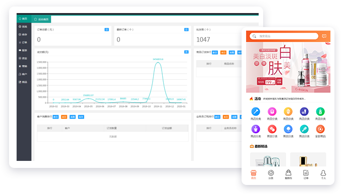 便捷的移動(dòng)訂貨商城,全面展示自己的商品,上新一鍵群發(fā),用戶最短時(shí)間了解新品,便于新品的推廣與銷售
